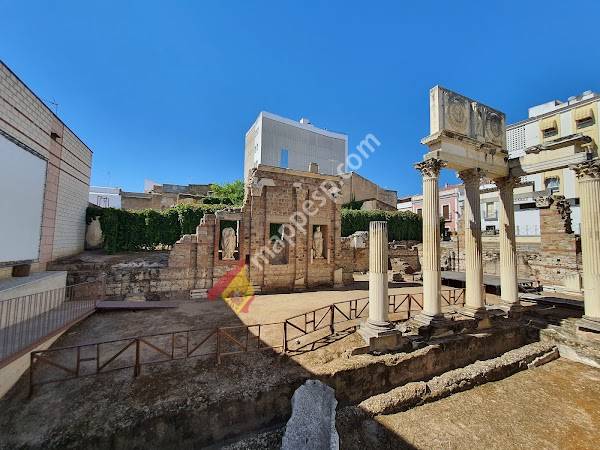 Está ubicado en la Calle Sagasta, se trata de una esquina de un complejo mucho más grande, formaba parte del Foro Municipal de Augusta Emerita, formaba parte de una plaza donde se discutían los asuntos civiles y donde se rendía culto a las divinidades del panteón romano.nMás en mi blog NO SOLO SENDERISMO