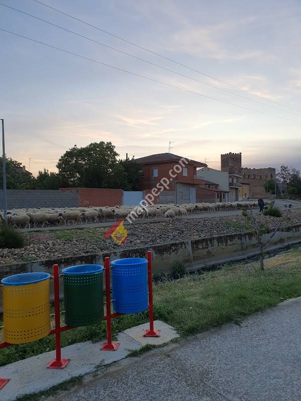 Un sitio genial, con varias tiendas, muchos bares, piscina, mercado los martes… un pueblo muy completo y muy tranquilo. Las vistas desde el área son al arroyo y se ve de lejos el castillo.